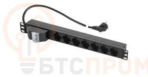 Блок розеток 7-м 16А 19дюйм 4кВт 490х44.4х44.4мм 2п автомат метал. корпус защ. шторки шнур 2м TLK TLK-RSC07-MD-04-BK
