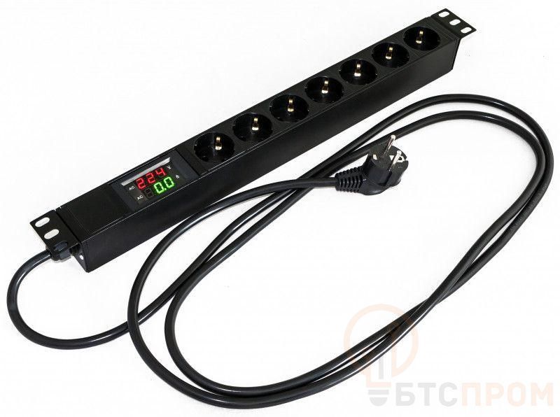 Блок розеток 7-м 16А SHE19-7SH-AV-2.5EU 250В 3х1.5кв.мм 482.6х44.4х44.4мм для 19дюйм горизонт. амперметр/вольтметр Schuko с вилкой Schuko шнур 2.5м Hyperline 412282