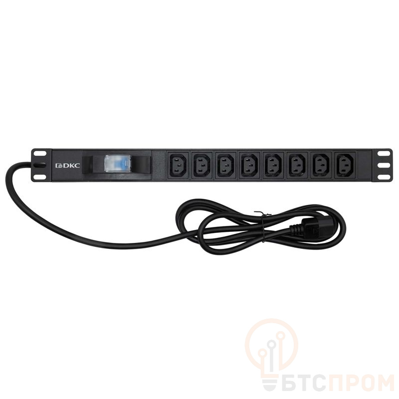 Блоки распределения электропитания ДКС (БРП или PDU) предназначены для обеспечения электропитания активных потребителей, размещенных в IT-корпусах. Совместимы со всеми сериями 19-дюймового оборудования. Блок на 8 разъемов IEC C13 оснащен автоматом защиты 1Р, двухметровым кабелем с разъемом IEC C14. Номинальное напряжение - 220-250 В, номинальная сила тока 10 А. Крепеж входит в комплект.