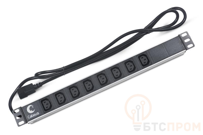 Блок розеток 8-м PDU-8I-2IEC 10А IEC 320 C13 для 19дюйм шкафов горизонт. без выкл. шнур 2м вилка IEC 320 C14 алюм. Cabeus 7291c
