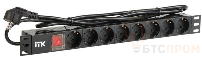 Блок розеток 8 мест PDU (немец. станд.) PH12-8D1-P 19дюймов DIN49440 с LED выкл. ПВХ 1U шнур 2м ITK PH12-8D1-P