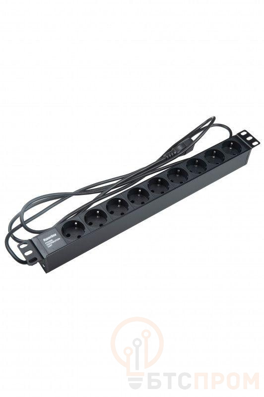 Блок розеток 9-м 10А SHE19-9SH-2.5IEC 250В 3х1кв.мм 482.6х44.4х44.4мм для 19дюйм горизонт. Schuko с вилкой IEC320 C14 шнур 2.5м Hyperline 397068