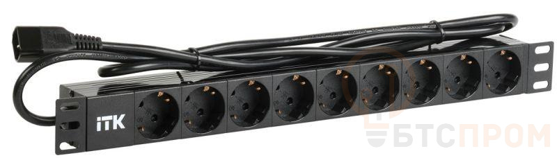 Блок розеток 9 мест PDU (немец. станд.) DIN 49440 ПВХ профиль 1U шнур 2м; вилка IEC 320 C14; черн. ITK PH22-9D2-P