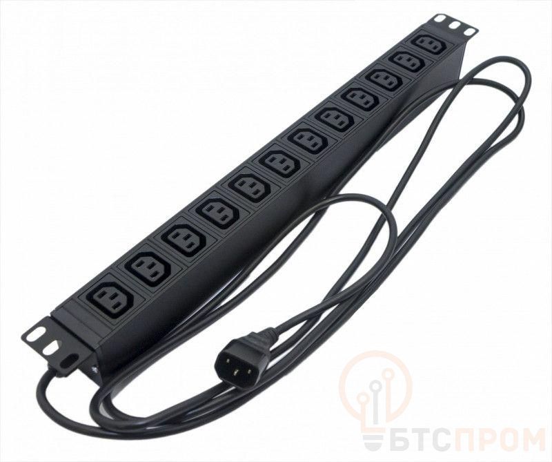 Блок розеток для 19дюйм шкафов горизонт. 12 розеток IEC320 C13 кабель питания 2.5м (3х1.0мм2) с вилкой IEC320 C14 10А 250В 482.6х44.4х44.4мм (ДхШхВ) сталь SHE19-12IEC-2.5IEC черн. Hyperline 426788