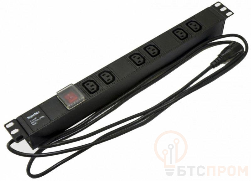 Блок розеток для 19дюйм шкафов горизонт. 6 розеток IEC320 C13 выкл. с подсветкой кабель питания 2.5м (3х1.0мм2) с вилкой IEC320 C14 10А 250В 482.6х44.4х44.4мм (ДхШхВ) сталь SHE19-6IEC-S-2.5IEC черн. Hyperline 397025