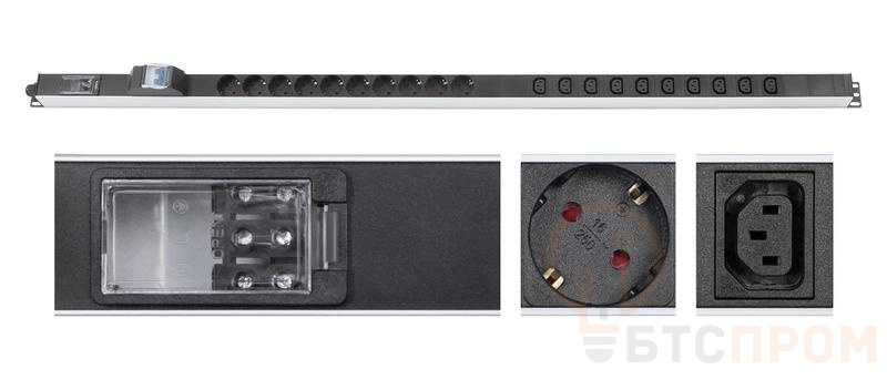 Блок розеток для 19дюйм шкафов PDU-16-10S-10C13-B-T вертик. 10 розеток Schuko 10 розеток IEC 320 C13 16А автомат защиты алюм. корпус клем. колодка 9550c