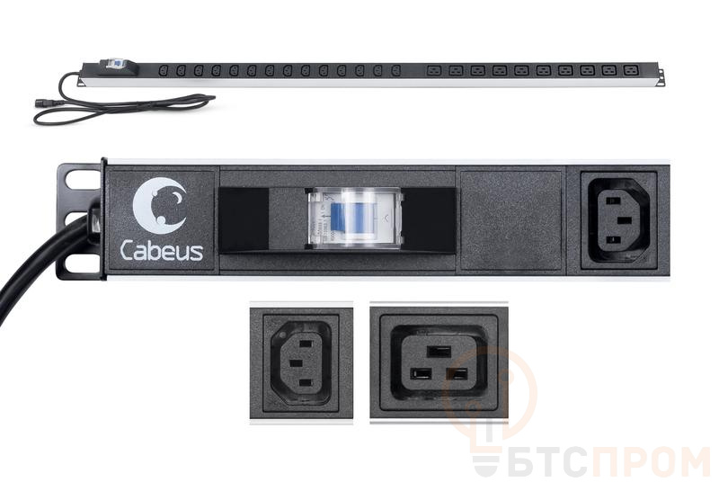 Блок розеток для 19дюйм шкафов PDU-16-14C13-10C19-B-C14 вертик. 10 розеток IEC 320 C19 14 розеток IEC 320 C13 10А автомат защиты алюм. корпус шнур с вилкой IEC 320 С14 2м Cabeus 9553c