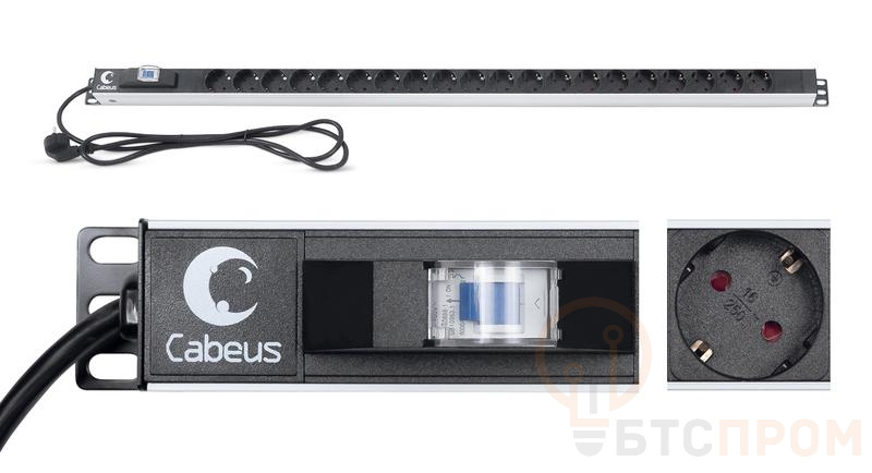 Блок розеток для 19дюйм шкафов PDU-16-20S-B вертик. 20 розеток Schuko 16А автомат защиты алюм. корпус шнур с вилкой Schuko 2м Cabeus 9551c