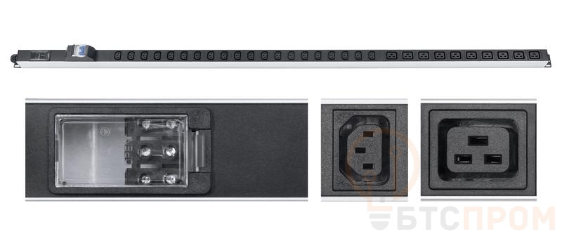 Блок розеток для 19дюйм шкафов PDU-32-10C19-20C13-B-T вертик. 10 розеток IEC 320 C19 20 розеток IEC 320 C13 32А автомат защиты алюм. корпус клем. колодка Cabeus 9546c