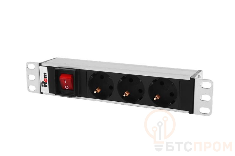 Блок розеток Rem-10 без шнура с выкл. 3 Sсhuko вход IEC 60320 C14 10А алюм. 10дюйм R-10-3S-V-220-Z Rem 1462216