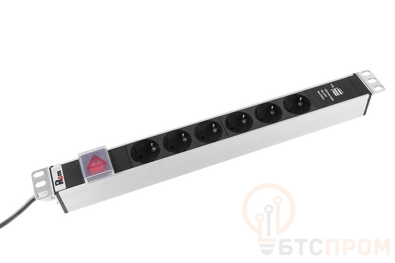 Блок розеток Rem-16 с выкл и USB-портом 6 Schuko 16А алюм. 19дюйм шнур 3м R-16-6S-V-U-440-3 Rem 1893557