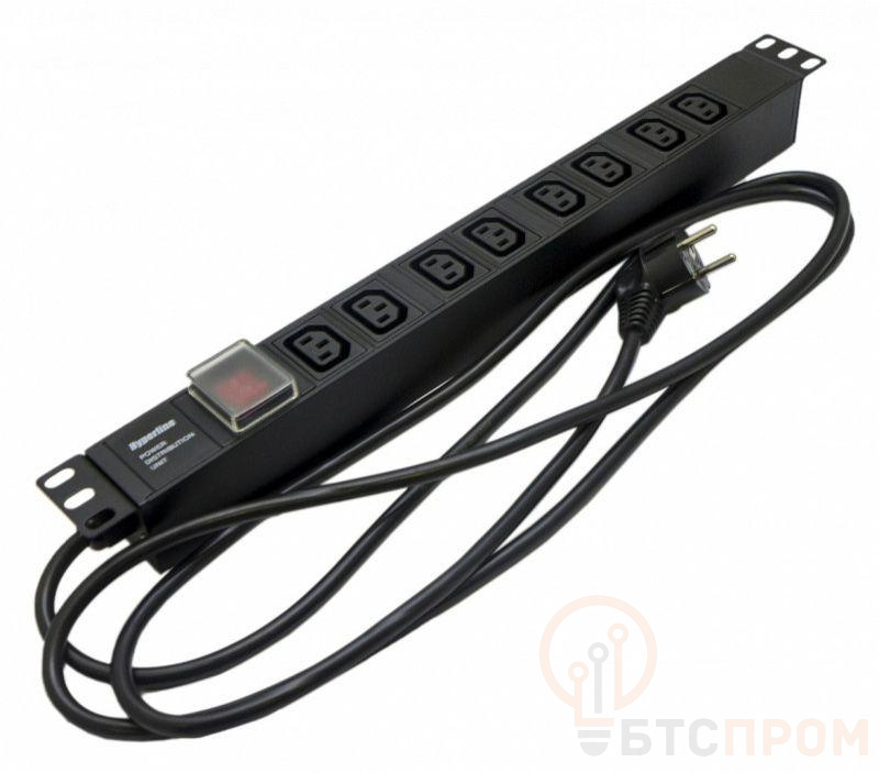 Блок розеток SHE19-8IEC-S-2.5EU для 19дюйм шкафов горизонт. с выключателем с подсветкой 8хIEC 320 C13 16А 250В кабель питания 3х1.5кв.мм длина 2.5м с вилкой Schuko 482.6х44.4х44.4мм (ДхШхВ) Hyperline 426780