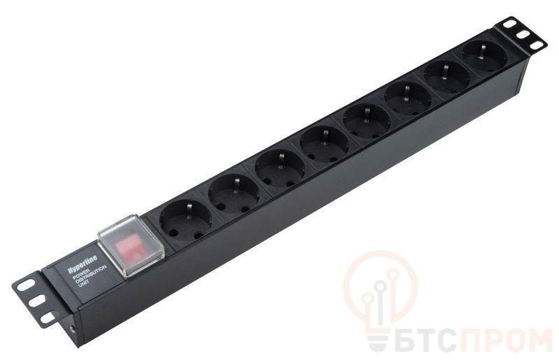 Блок розеток SHE19-8SH-S-IEC 19дюйм 250В 1U 10А 8 розеток Schuko с выкл. алюм. корпус разъем IEC 60320 C14 Hyperline 255002