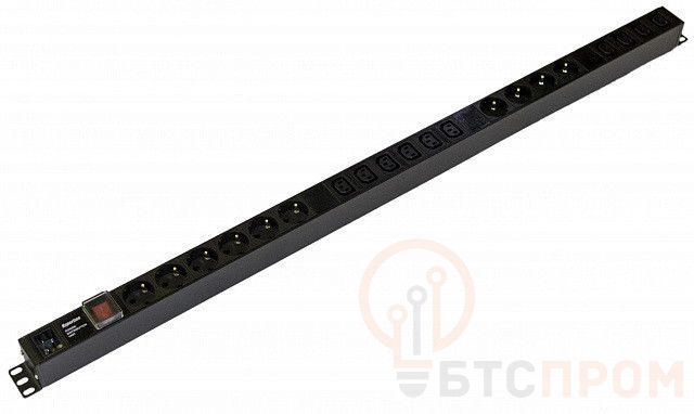 Блок розеток вертик. 10 розеток Schuko 10 розеток IEC320 C13 выкл. с подсветкой без кабеля питания входной разъем IEC320 C20 16А 250В сталь SHE-10SH-10IEC-S-AIEC черн. Hyperline 470942