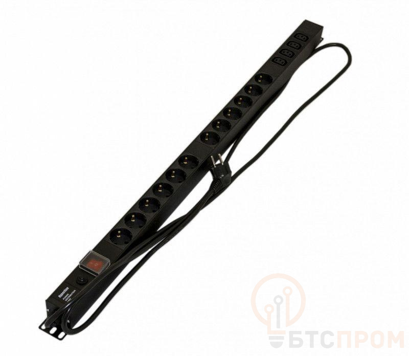 Блок розеток вертик. 12 розеток Schuko 4 розетки IEC320 C13 выкл. с подсветкой защита от перенапряжения кабель питания 2.5м (3х1.5мм2) с вилкой Schuko 16А 250В 950х44.4х44.4мм (ДхШхВ) SHE-12SH-4IEC-SF-2.5EU Hyperline 396986