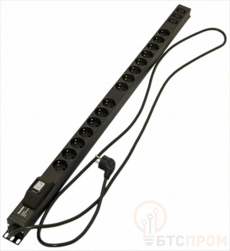 Блок розеток вертик. 15 розеток Schuko 3 розетки IEC320 C13 автомат. выкл. кабель питания 2.5м (3х1.5мм2) с вилкой Schuko 16А 250В 1040х44.4х44.4мм (ДхШхВ) сталь SHE-15SH-3IEC-B-2.5EU черн. Hyperline 396991