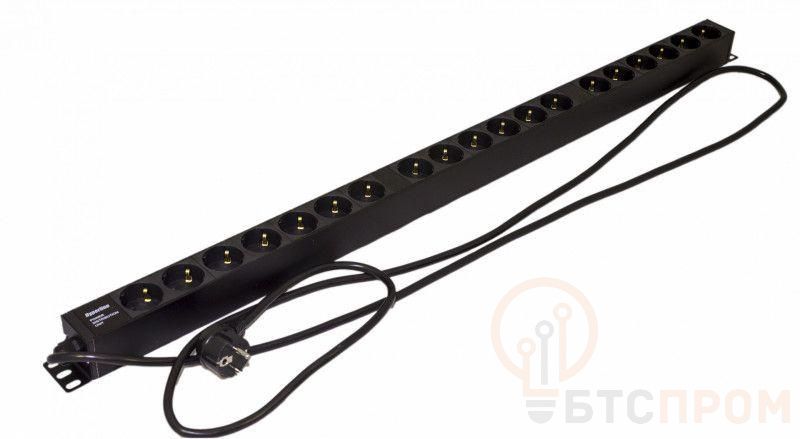 Блок розеток вертик. 19 розеток Schuko кабель питания 2.5м (3х1.5мм2) с вилкой Schuko 16А 250В 780х44.4х44.4мм (ДхШхВ) сталь SHE-19SH-2.5EU черн. Hyperline 397069
