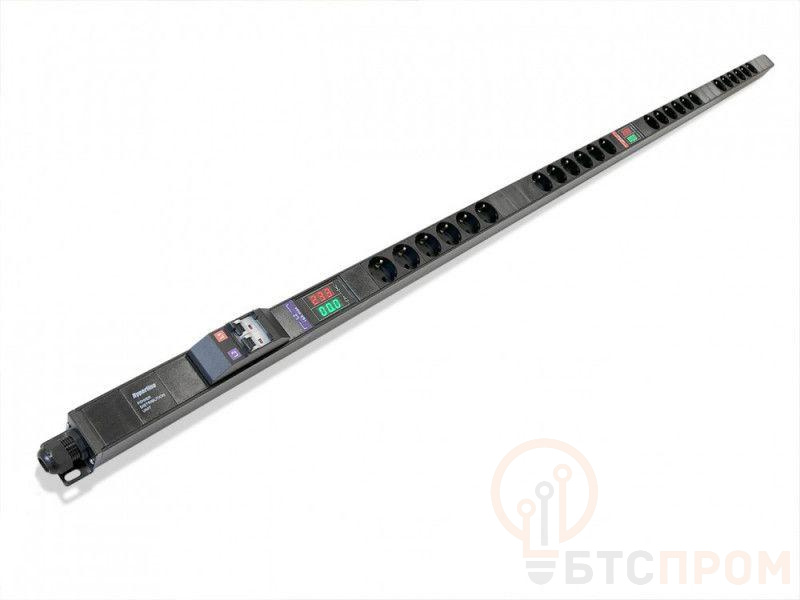 Блок розеток вертик. 24 розетки Schuko автомат. выкл. амперметр/вольтметр без кабеля питания клеммная колодка 32А 250В 1863х44.5х44.5мм (ДхШхВ) сталь SHE-24SH-BAV-CB черн.Hyperline 452222