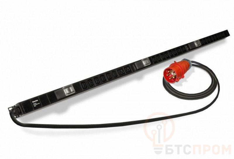 Блок розеток вертик. 3 блока по 6 розеток IEC320 С13 + 2 розетки IEC320 С19 +автомат. выкл. кабель питания 3м (5х6.0мм2) с вилкой IEC 60309 32А (3P+N+E) 380В 1556х68х44.4мм (ДхШхВ SHE-18IEC-6BIEC-3V-3PVR Hyperline 396994