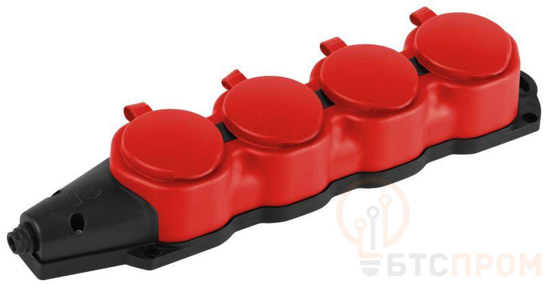 Каучуковая колодка ЭРА KX-4e-RED-IP44 4 гнезда, с заземлением, красная, для подключения кабеля (без разбора корпуса). Съёмная крышка. IP44-защита от пыли и влаги. Максимальная мощность 16А/3500Вт. Для кабеля сечением до 3x2,5мм2.