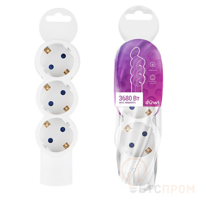 –Колодка розеточная 3 гнезда с заземлением Quick Fix (быстрое подключение) 3680Вт Duwi 32017 5