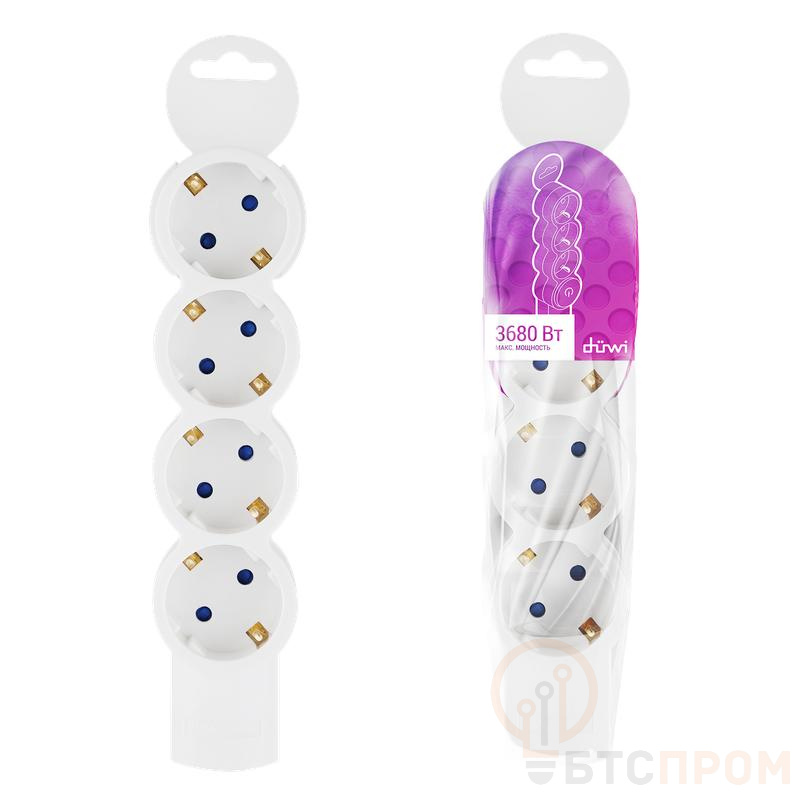 –Колодка розеточная 4 гнезда с заземлением Quick Fix (быстрое подключение) 3680Вт Duwi 32020 5