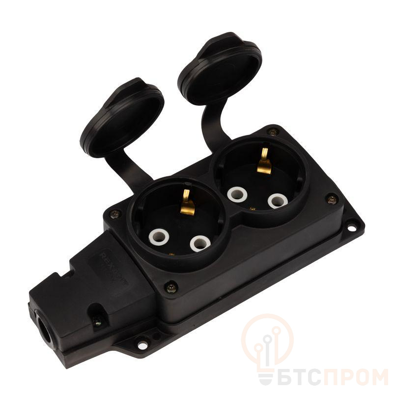 Колодка удлинителя 2-м с заземл. 16А IP54 влагозащ. с защ. крышкой COMPACT каучук черн. Rexant 111-222