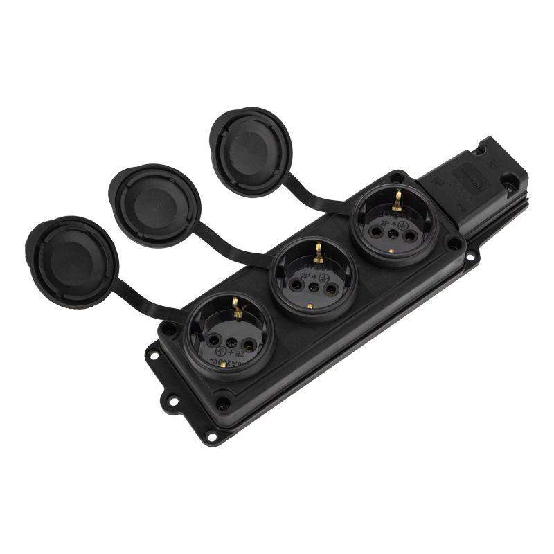 Влагозащищенная колодка используется для подключения бытовых и профессиональных приборов к электросети. Предназначена для использования в сложных эксплуатационных условиях с высокой влажностью. Широко применяется в быту, на производстве и в строительстве. Легко монтируется, имеет высокую надежность и долгий срок службы. Колодка оснащена защитной крышкой, которая предотвращает попадание пыли и влаги внутрь устройства. Это снижает риск короткого замыкания и делает использование более безопасным. Степень защиты IP44 позволяет использовать колодку для организации электропитания на улице. Во время дождя устройство необходимо размещать под навесом. Погружение в воду запрещено. Ударопрочный разборный корпус выполнен из каучука: устойчив к ударам, вибрациям и другим механическим воздействиям. Заземление: есть. Сечение проводников: 0,75-2,5 мм2. Контактная группа: латунь. Тип полюсов: 2Р+РЕ.