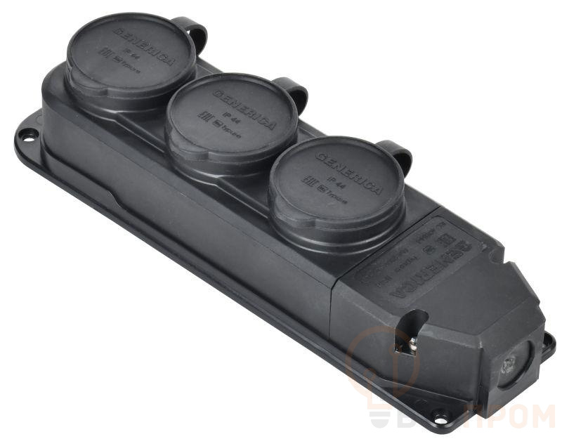 Колодка удлинителя 3-м 16А IP44 с защ. крышкой каучук черн. GENERICA ERK20-016-03-44-K02-G