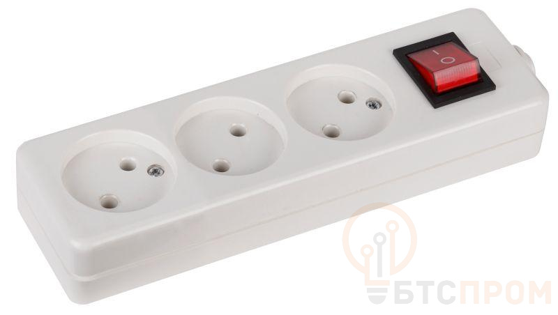 Колодка ЭРА K-3s. На 3 розетки без зазeмления с выключателем. Максимальная мощность 10 А/2200. Для кабеля сечением до 2x1мм2.