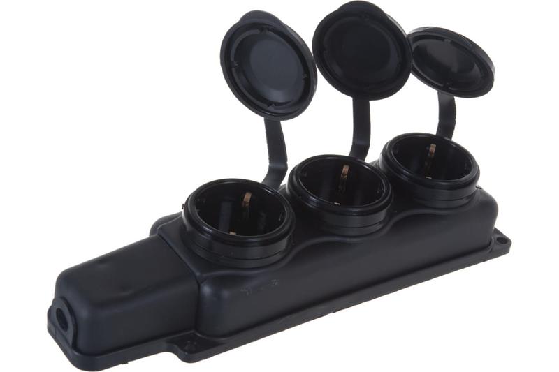–Колодка удлинителя 3-м с заземл. 16А IP44 1ф 250В защ. крышки каучук черн. БЕЛТИЗ РП 16-334