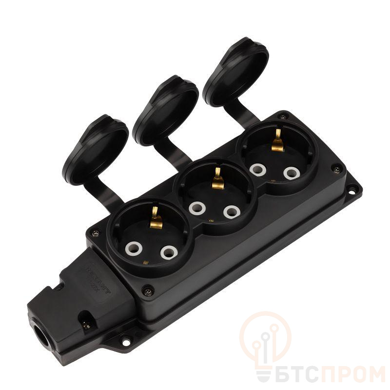 Колодка удлинителя 3-м с заземл. 16А IP54 влагозащ. с защ. крышкой COMPACT каучук черн. Rexant 111-223