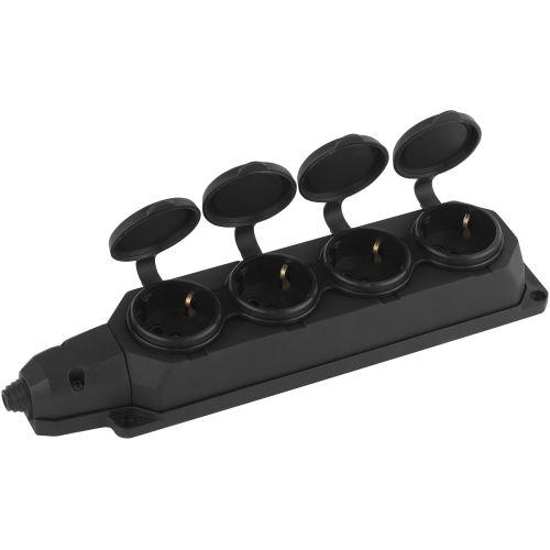 Колодка электрическая каучуковая Эра K-4e-B-IP44 c заземлением, 4 розетки. Корпус выполнен из пыле- и влага- защищенного материала (каучук). Рассчитана на максимальную мощность 16А / 3500 Вт и для подключения кабеля сечением до 2,5 мм2. Электрическая колодка подойдет для тех, кто хочет сделать удлинитель самостоятельно. Также может использоваться, как накладные розеточные блоки в подсобных помещениях.