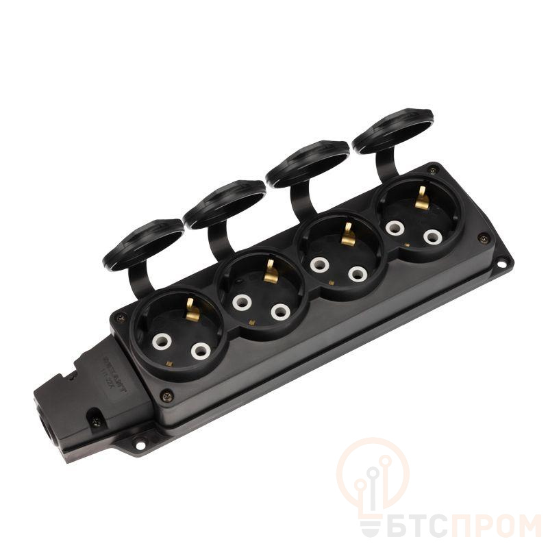Корпус выполнен из ударопрочного каучука черного цвета, обеспечивающего долговечность и устойчивость к механическим воздействиям. Степень защиты IP54 гарантирует эффективную защиту от брызг воды и пыли. Наличие защитных крышек на каждом гнезде предотвращает попадание влаги и посторонних предметов при неиспользовании.