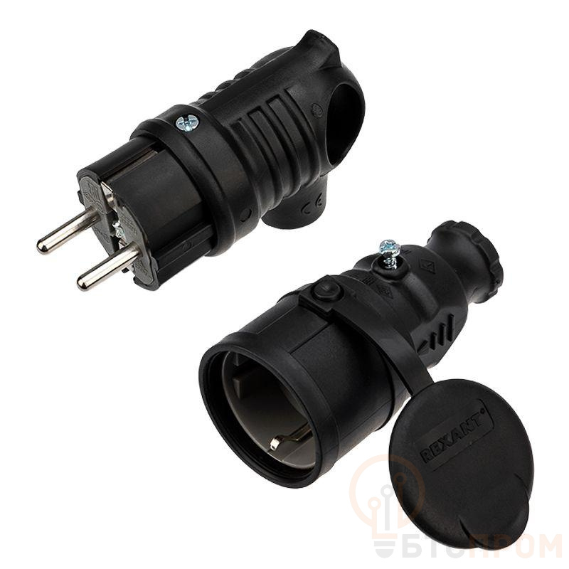 Набор розетка + вилка предназначены для изготовления сетевых шнуров и удлинителей требуемой длины. Технические характеристики: Номинальный ток: 16 А Степень защиты: IP44 Материал: каучук Цвет: черный