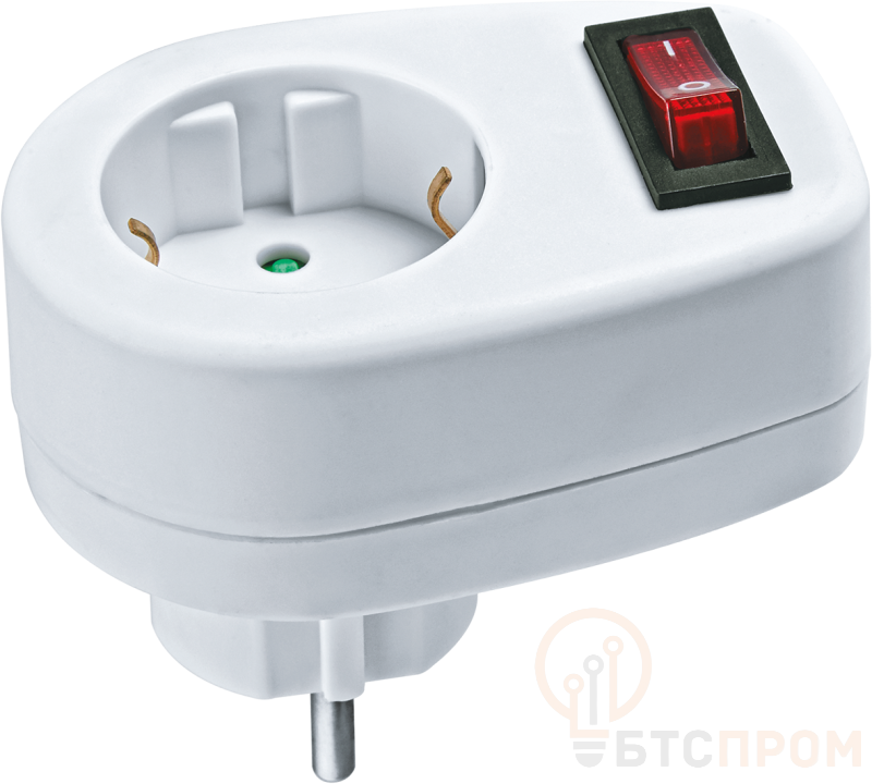 Модель оснащена заземляющим контактом и одним выключателем с индикатором, который позволяет управлять питанием подключенного прибора и визуально контролировать его статус. Ключевая особенность — вырез для удобного монтажа в стандартную монтажную коробку, что делает переходник идеальным для замены старой розетки без необходимости проведения сложных электромонтажных работ.