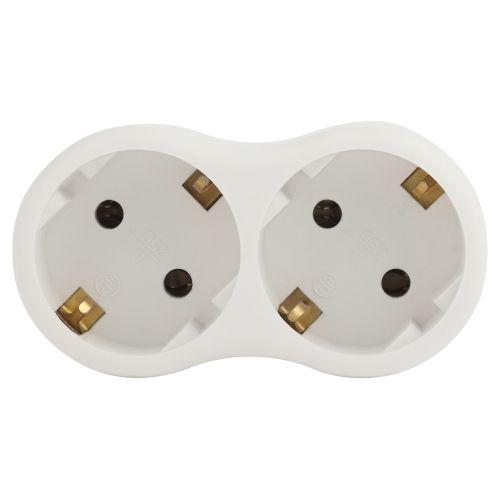 Разветвитель электрический Эра SPx-2e-W с заземлением, 2 розетки, белый. Если в Вашем доме недостаточно розеток, чтобы одновременно подключить несколько электроприборов, то тройник марки Эра станет Вашим надежным помощником. Электрический разветвитель рассчитан на максимальную мощность 16А/3500Вт. Корпус выполнен из ударопрочного и негорючего пластика (поликарбонат). Модель тройника на 16А позволяет подключить мощные бытовые приборы общей нагрузкой до 3500Вт. Не бойтесь включить чайник, обогреватель или микроволновку. Дизайн разработан в России командой Эра Style.