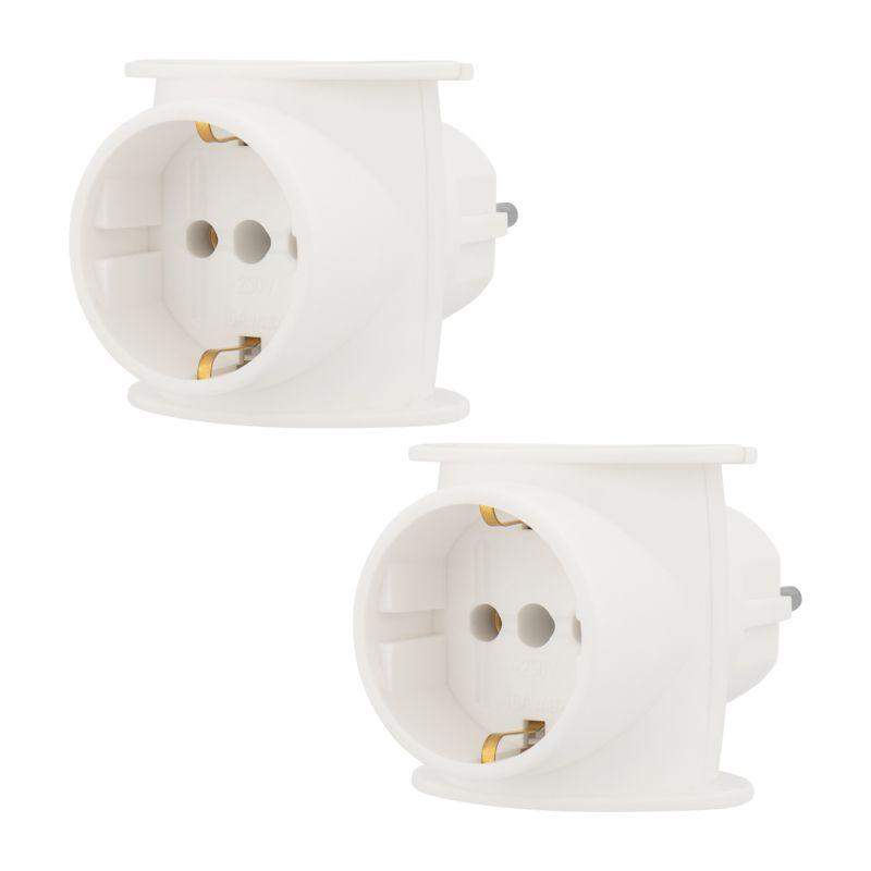 Электрический тройник REXANT предназначен для одновременного подключения к электрическим сетям с напряжением 220 В нескольких приборов. В наборе два белых тройника с одним заземленным гнездом. Рекомендуется применять устройство в сухом помещении. Технические характеристики: Напряжение: 250 В Частота тока: 50 Гц Номинальный ток: 16 А Мощность: 3500 Вт Заземление контактов: есть Степень пылевлагозащиты: IP20 Цвет: белый Корпус материала: полипропилен