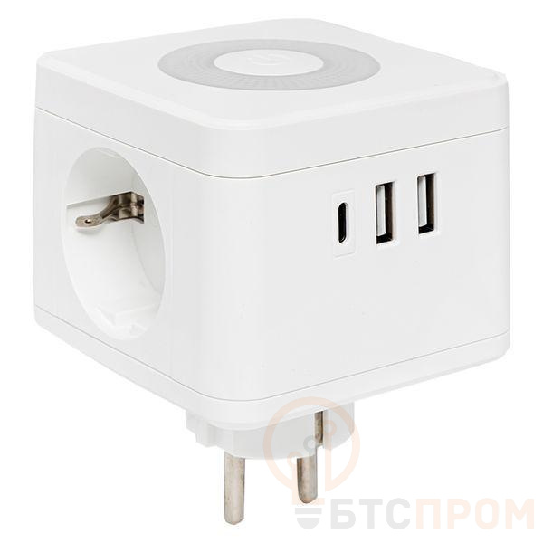 Тройник EKF серии Куб предназначен для подключения к электрической сети всех видов бытовой и офисной техники, для зарядки и питания устройств через порты USB, а также для подсветки помещений в качестве ночника