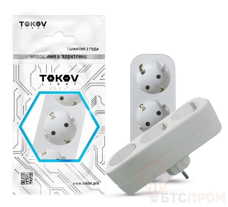 Разветвитель 3-м с заземл. 16А 250В IP20 полипропилен бел. TOKOV ELECTRIC TKL-S3Z-C01 фото в каталоге от BTSprom.by