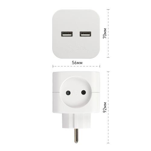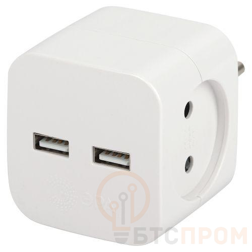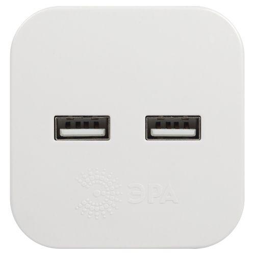 Разветвитель электрический SP-2-USB-W на 2 розетки 220В+ 2xUSB 2400мА без заземл 10А бел. Эра Б0049531