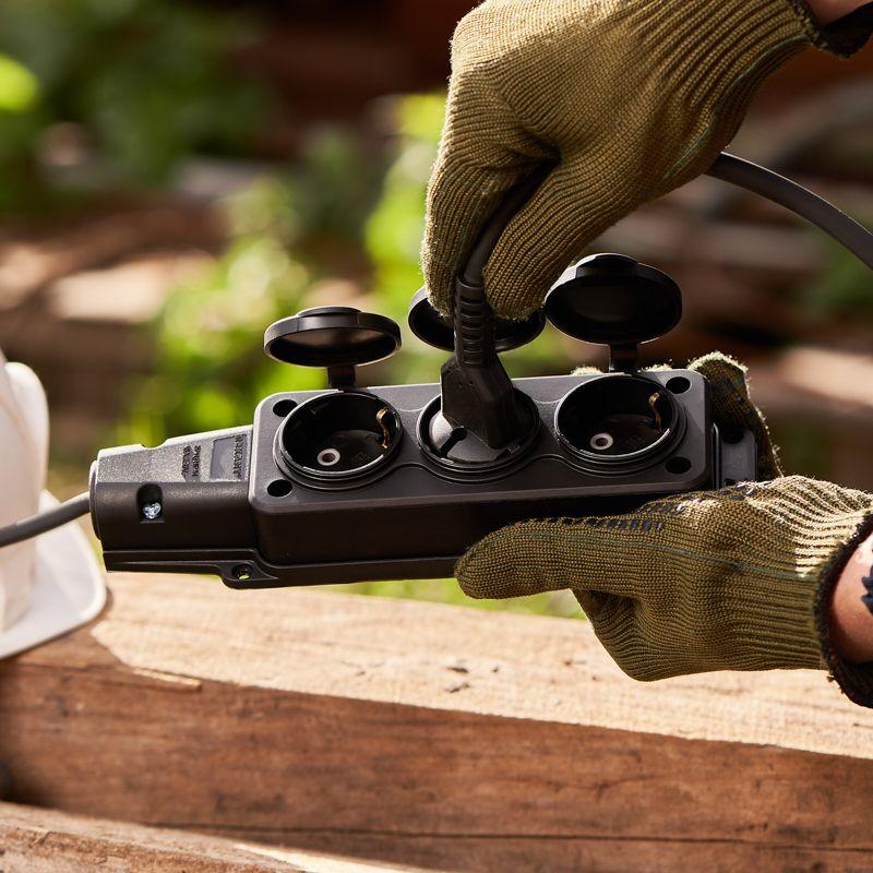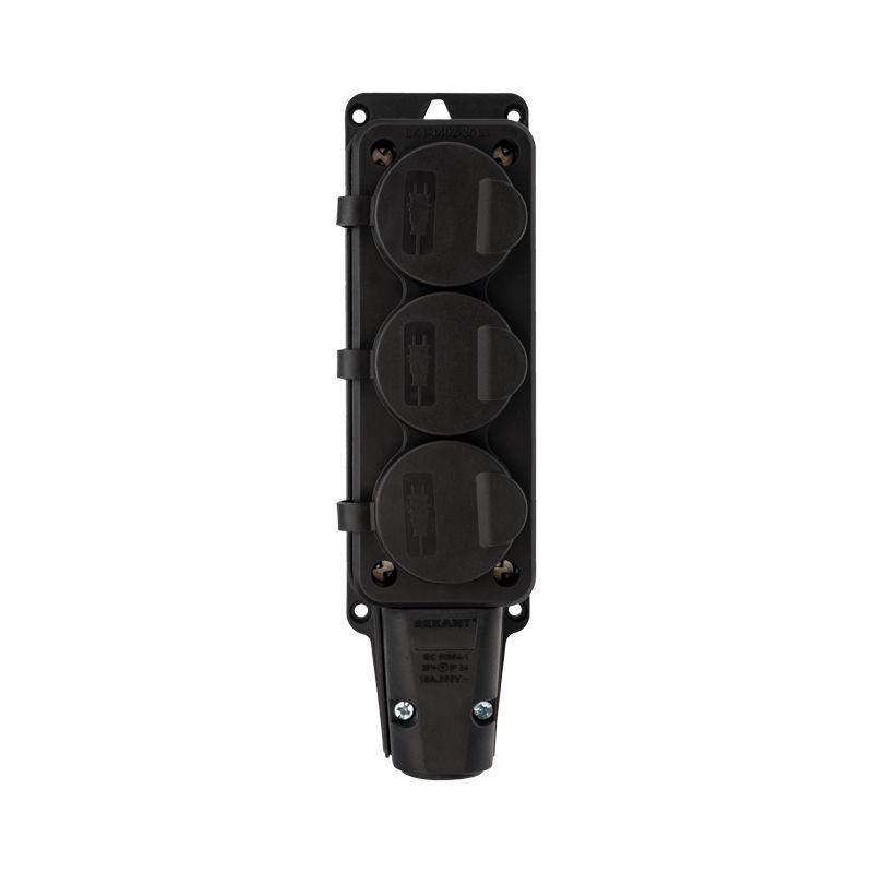 Электрическая влагозащищенная розетка предназначена для подключения бытовых и профессиональных приборов к электросети. Разработана для использования в сложных эксплуатационных условиях с высокой влажностью. Широко применяется в быту, на производстве и в строительстве. Может быть использована в переносном или стационарном варианте. Степень защиты IP54 позволяет использовать розетку для организации электропитания под открытым небом, а в дождь – под навесом. Не допускается погружение в воду. Количество штепсельных розеток с заземляющим контактом – 3 шт. Допускается присоединение трех вилок одновременно с суммарным максимальным током по ним 16 А. Каждое розеточное место оснащено защитной крышкой. Для обеспечения безопасности детали, соприкасающиеся с токоведущими частями выполнены из огнеупорного материала, устойчивого к температуре до +850 ?С. Для крепления к поверхности предусмотрены специальные отверстия. Увеличенная клеммная крышка и вводная группа упрощают монтаж кабеля. Ударопрочный разборный корпус выполнен из каучука: устойчив к ударам, вибрациям и другим механическим воздействиям. Заземление: есть. Сечение проводников: 0,75-2,5 мм2. Контактная группа: MS-58 (латунь). Тип полюсов: 2Р+РЕ.