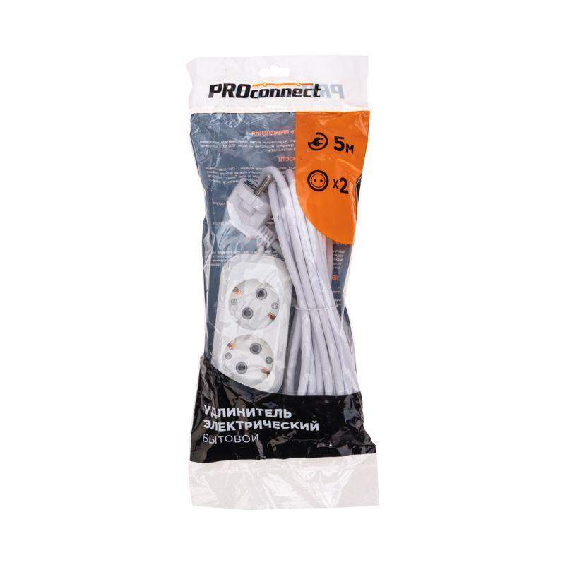Удлинитель 2 гнезда 5м 3х0.75кв.мм с/з бел. PROCONNECT 13-4204 фото в каталоге от BTSprom.by
