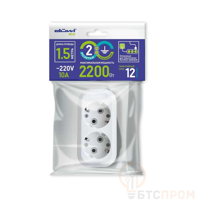 Удлинитель 2х1.5м с заземл. ПВС 3х0.75 Duwi 28616 5 фото в каталоге от BTSprom.by