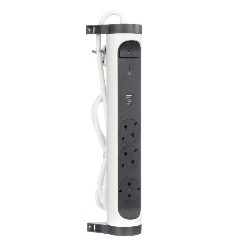 Удлинитель 3х1.5м 16А IP20 Комфорт 3х2P+E 2хUSB A+C 3А с поворотн. осн. защита от импульсных перенапряжений бел./черн. Leg 694508