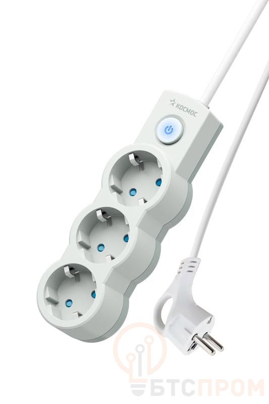 Удлинитель 3х1.5м с заземл. 10А IP20 2200Вт 220В защ. шторки ПВС 3х1 с выкл. бел. КОСМОС YKsm1.5m-3g-Z-V10A-W+A1:AV803524