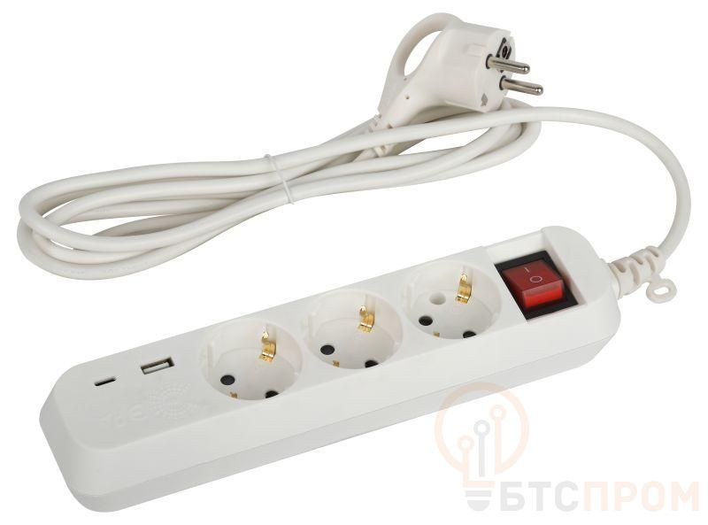 Удлинитель электрический ЭРА UB-3es-1,5m-USB с заземлением, с выключателем, 3 розетки, 1,5м ПВС 3x0,75мм2. Рассчитан на максимальную мощность 10А/2200Вт. 2-мя USB гнездами (Type A и Type C) для зарядки портативных устройств. Максимальная мощность USB разъемов: 2400 мА. Новые удлинители ЭРА с USB разработаны и произведены в России. Удобная кнопка включения позволяет отключать электроприборы, не выдёргивая вилку удлинителя из сети. Для комфортного извлечения вилка удлинителя имеет гибкое кольцо. Глубокие гнёзда удлинителей ЭРА с USB-портами надёжно фиксируют вилки электроприборов. Прочный и гибкий трёхжильный провод - залог электробезопасности и долговечности данных приборов. Разветвители и удлинители ЭРА с USB изготовлены из пожаробезопасных материалов, в составе которых присутствуют препятствующие горению антипирены. Корпусы ударопрочны. Доступен выбор длины шнура - 1,5, 3 или 5 метров. Удлинители ЭРА с 2 USB-портами и 3 розетками: арт. Б0052897 - со шнуром 1,5 м; арт. Б0052898 - со шнуром 3 м; арт. Б0052899 - со шнуром 5 м. Удлинители ЭРА с 3 розетками + 1 порт USB Type A + 1 порт USB Type C: арт. Б0052900 - со шнуром 1,5 м; арт. Б0052901 - со шнуром 3 м; арт. Б0052902 - со шнуром 5 м.