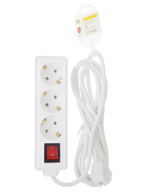 –Удлинитель 3х1.5м с заземл. 16А IP20 У03К 2P+PE 250В ПВС 3х1 с выкл. IEK WYP10-16-03-01-ZK-17