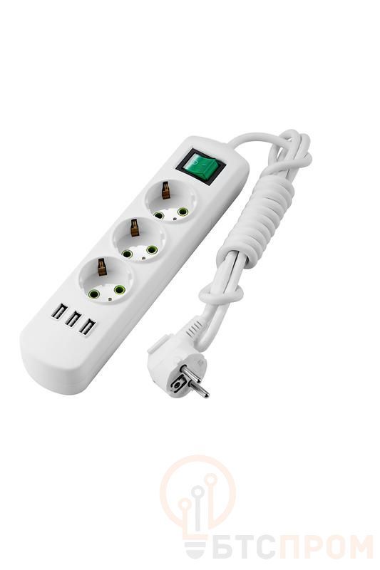 Удлинитель 3х2м с заземл. Letitia USB с выкл. LEZARD 721-0302-302U фото в каталоге от BTSprom.by