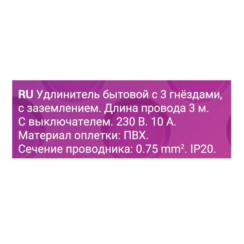 –Удлинитель 3х3м с заземл. 3Gх0.75 с выкл. защ. шторки REV 32008 3